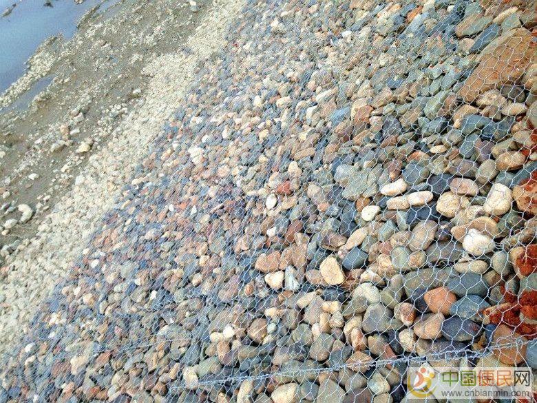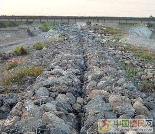 2、网箱:在水利河道中,3×1×0.5m,2×1×1m,1.5×1×1m,2×1×1m,4×1×0.5m,都是防洪常用的格宾石笼尺寸,网孔为8×10cm,网面钢丝直径为2.7mm,边端钢丝为3.4mm,绑扎钢丝为2.2mm,对应的钢丝直径公差分别为:0.06mm,0.07mm,0.06mm;对应的镀层量分别为:245g/㎡,265 g/㎡,230 g/㎡cnbianmin.com。